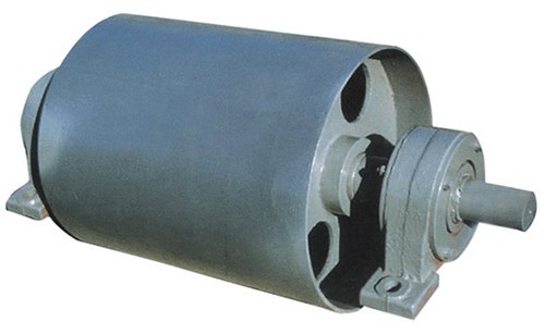 傳動滾筒是輸送機傳遞動力的部件。其驅動帶式輸送機的方式有單滾筒、雙滾筒及多滾筒之分。單滾筒多用于功率不太大的輸送機上,如煤礦地面運輸及選煤廠等處。井下帶式輸送機一般均采用雙滾筒,以使輸送機結構緊湊。傳動滾筒表面有裸露光鋼面,人字形和菱形花紋橡膠覆面。小功率、小帶寬及環境干燥時可采用裸露光鋼面。人字形花紋膠面摩擦系數大,防滑性和排水性好,但有方向性。菱形膠面用于雙向運行的輸送機。